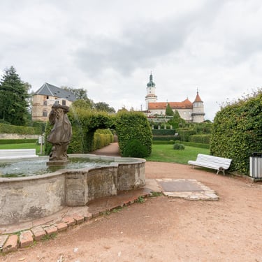 Jedinečný zahradní areál v ČR. Pohodlně a částečně bezbariérově přístupný ze zámeckého nádvoří a z veřejného parkoviště pro osobní automobily a autobusy. Svěží zeleň, voňavé květiny, členité terasy, kamenní trpaslíci, a hlavně klid přímo vybízí k odpočinku a relaxaci.