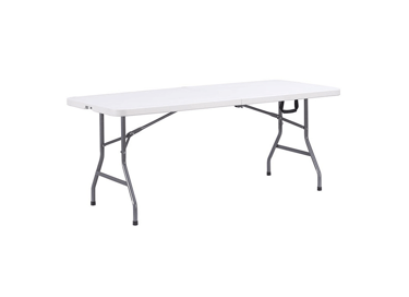 Bílý stůl o velikostech 180cm nebo 244cm, vhodný pro vnitřní i venkovní použití.