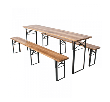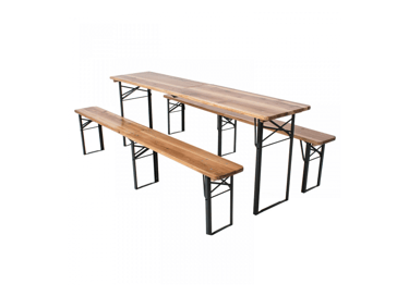 Set obsahující jeden stůl a dvě lavice o délce 220cm a šířce 50cm, který je vhodný pro vnitřní i venkovní použití.